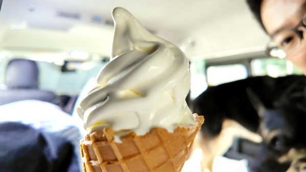 ご当地ソフトクリームの「りんごソフト」!(暑すぎてもう溶け気味w)