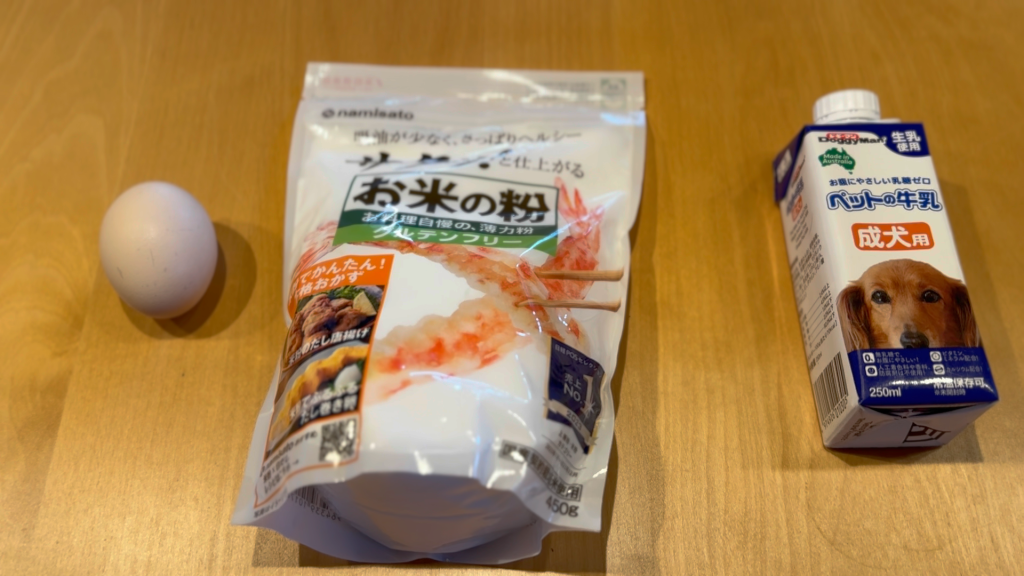 まずは、卵、米粉、ワンちゃん用ミルクで維桜さんのホットケーキから準備しましょう。