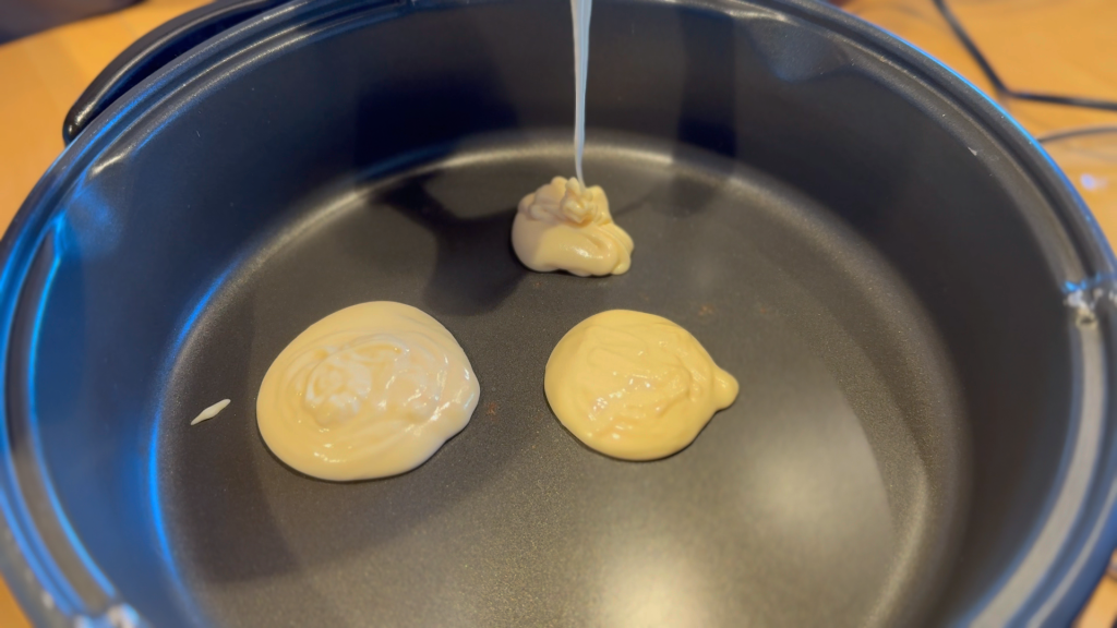 卵1個に対して、米粉は100g、ミルクは80mlぐらいの分量が良さそうです。