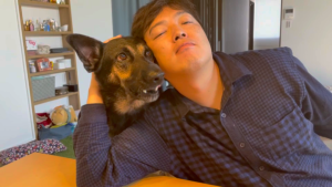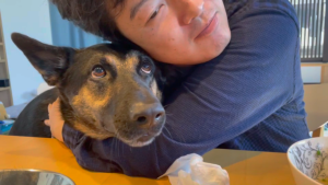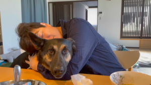 オヤジが愛犬に頬ずりをしようとしたら・・・どうやらそれにはまだまだ時間が必要かもしれませんw