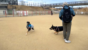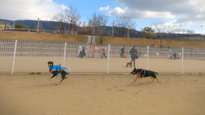 ドッグランで猛烈ダッシュの追いかけっこ!サルーキとジャーマンシェパード、どっちが速い?
