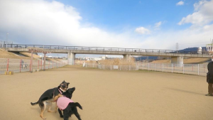 維桜さん、橋の下に見えるドッグランを、見つけてしまいました・・・。
