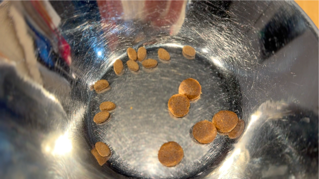 いつものフードに比べたら、めっちゃ粒が小さい〜!