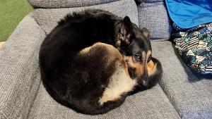 オヤジも、週末くらいソファに座りたいねん・・・。