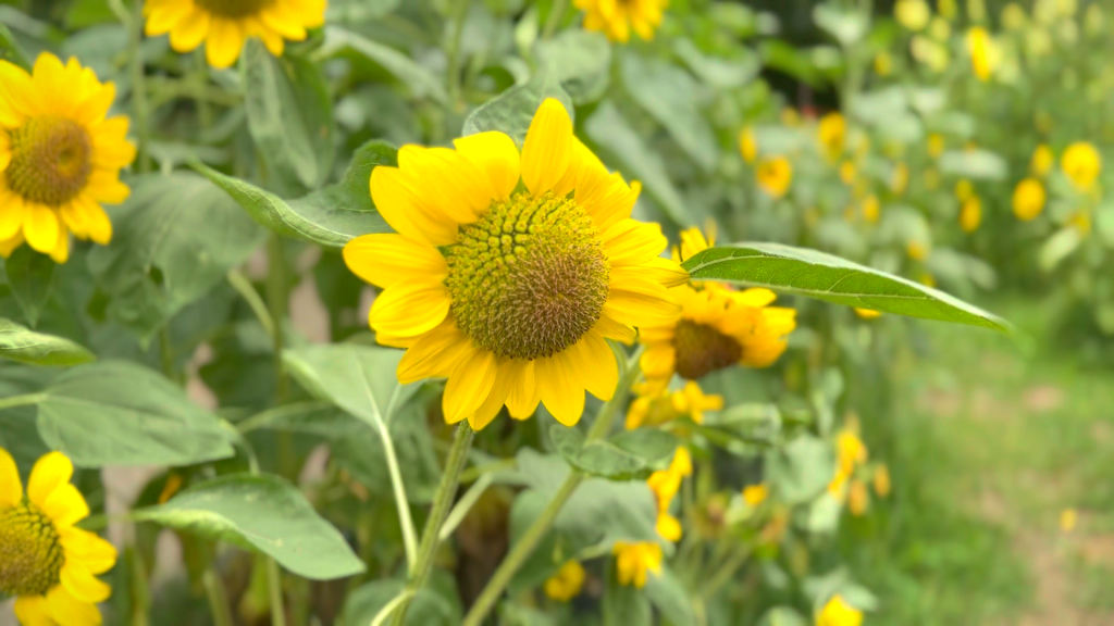 ヒマワリ畑には、2種類のヒマワリが咲いていました。