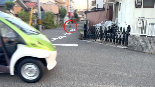 住宅街と言えど、この道は意外と車の通りがあるみたい・・・。