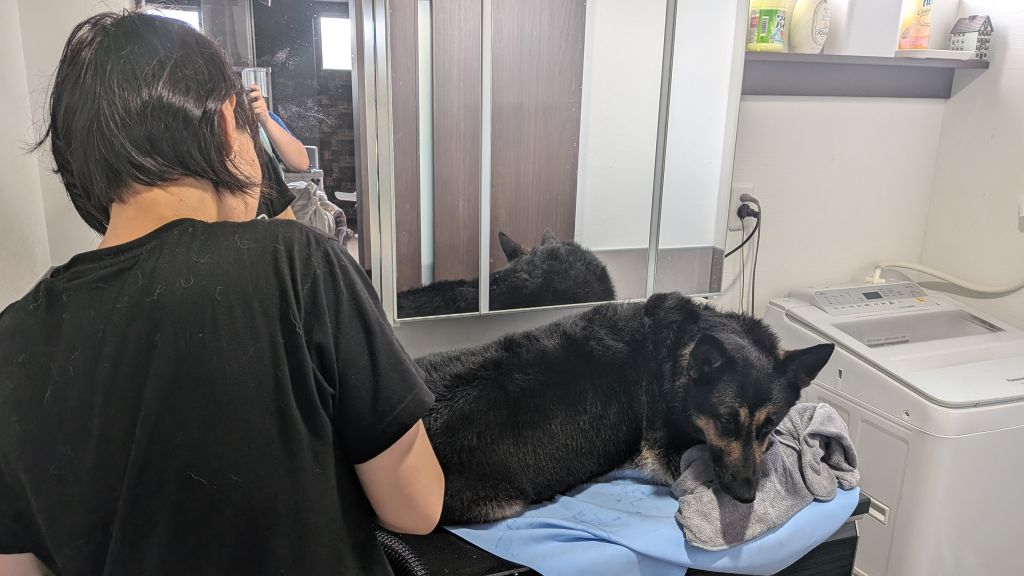 うちはトリミング台がないので、維桜さんに洗面台の上に乗ってもらってます。