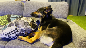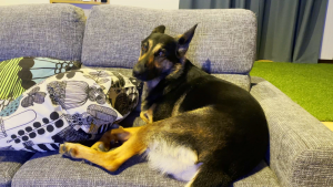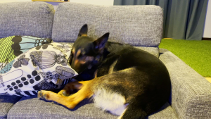 飼い主のコーヒーブレイクを敏感に察知する犬