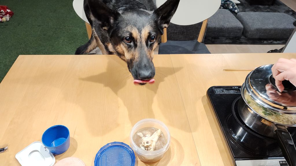 美味しそうな匂いについつい舌を出して、もう気持ちは食べてるな〜?