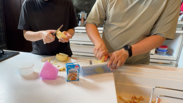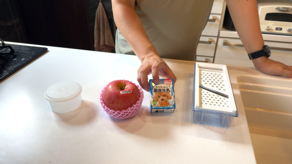 まずは、りんごを小さく切ってからすりおろしちゃいましょう。