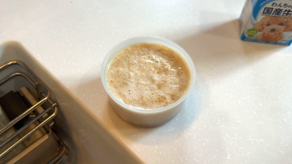 すりおろしりんごとワンちゃん用ミルクを凍らせて・・・