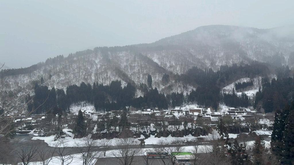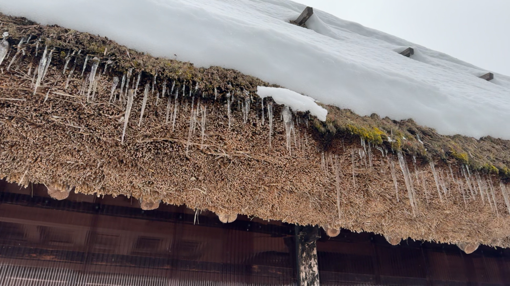 雪を冠った合掌造りの建物、とても趣があって素敵でした。