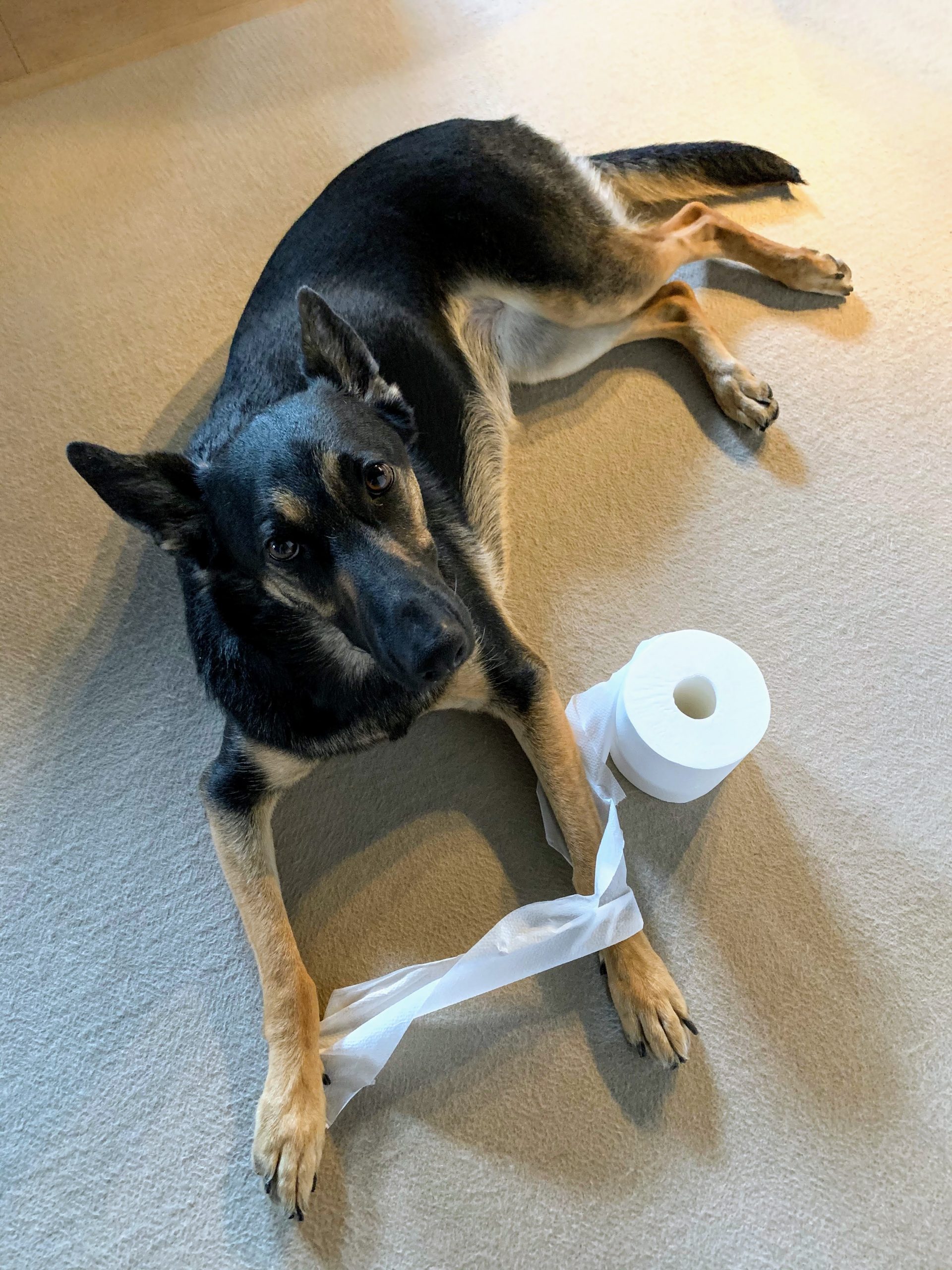 トイレットペーパーは、ぐちゃぐちゃにしたらダメって普段から言ってるでしょー!?
