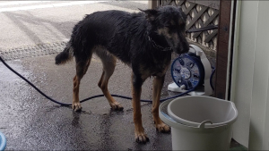 維桜さんの場合、「散歩中に雨が降ってきた犬」ならぬ、「シャンプー中にテンションがだだ下がってきた犬」ですね( ̄▽ ̄;)