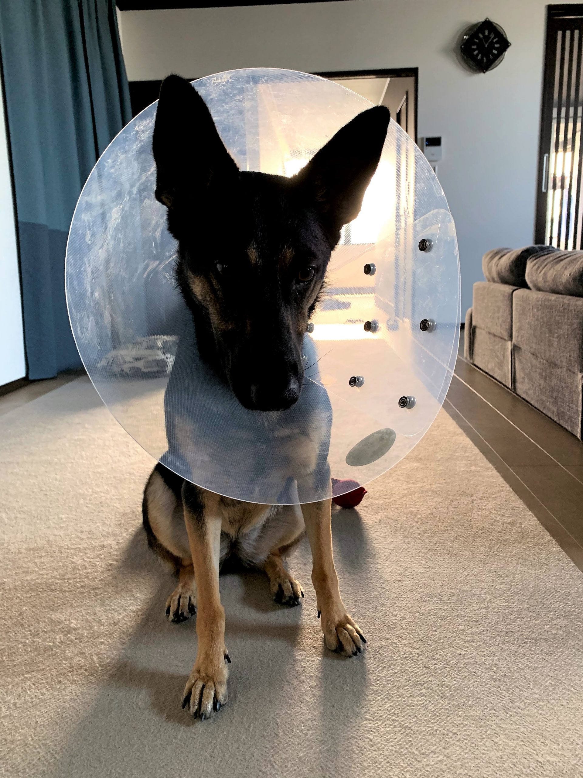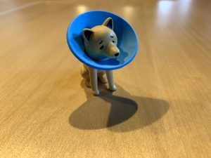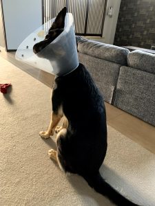 「エリザベスカラーの犬」