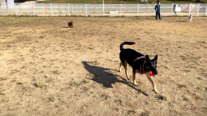 よく見ると、他のワンちゃんのボールを追いかけているようです。