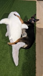最近良く出没するサメのぬいぐるみを抱っこして寝ている維桜さんです😓
