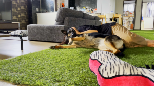 雨の降っていない時を狙って、早朝から誰かさんを散歩に連れて行かないといけなかったから、睡眠不足なのよっ。