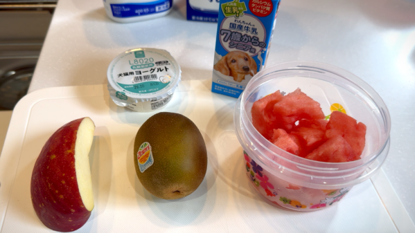 (飼い主のスムージーは、人間用の牛乳とヨーグルトで作りました)