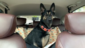 この時は、車の種類も違い、またシートベルトをさせたまま留守番をさせたので、