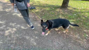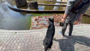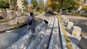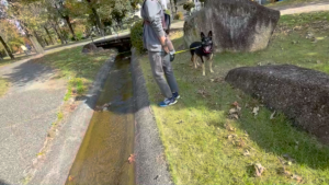 この小川を、なんの気なしに私(飼い主♀)が向こう側へ飛び越えました。