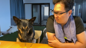 シェパさんがリンゴ食べてるみたい・・・?