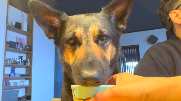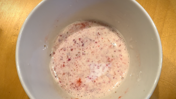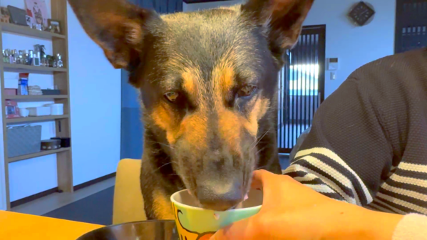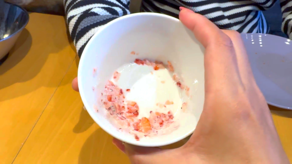 愛犬の大好物のいちごでいちごミルクを作って出したら…どこ見てんの?😂