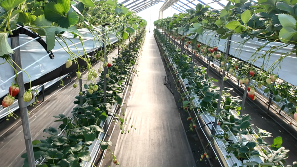 明るくてとっても清潔なハウス内には、食べ頃のいちごがいっぱーい!
