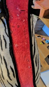 これ、ママ様が超絶ヘタピの裁縫の腕で、何とか補修したのですが、もう噛みまくってボロボロ・・・。