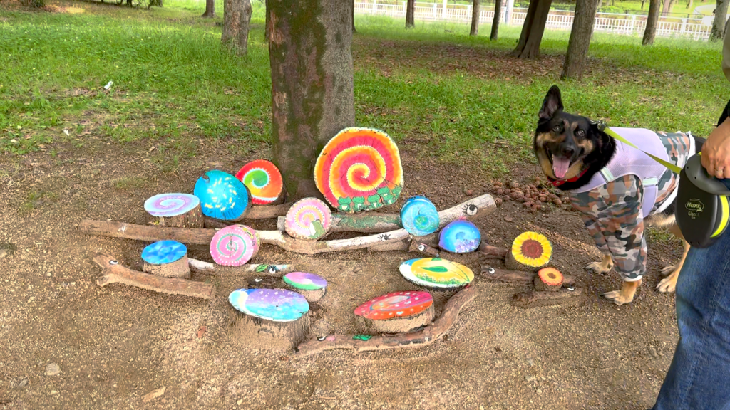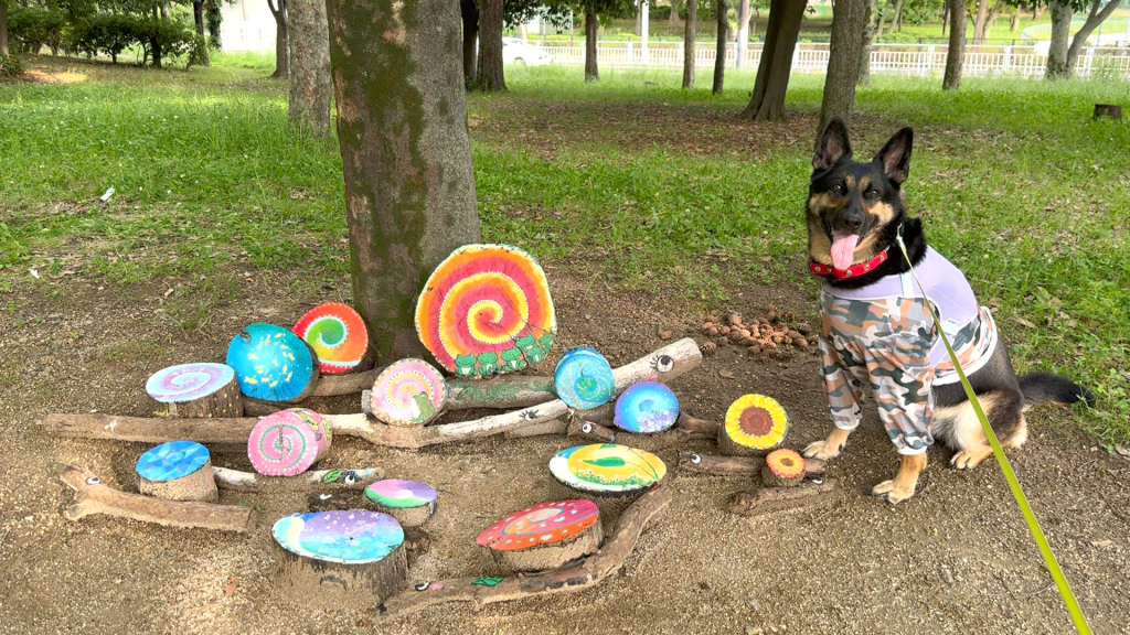 今日は、公園に新しい切り株シリーズが並んでいました。