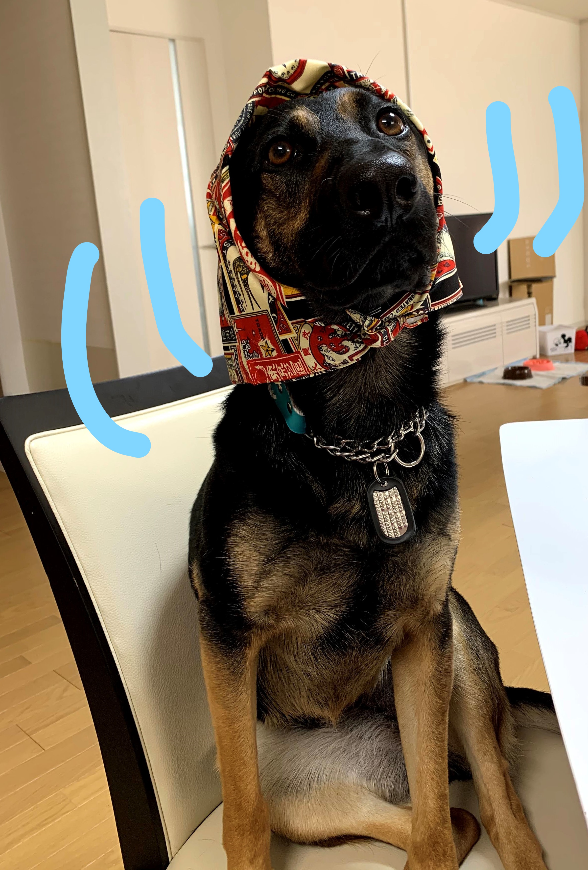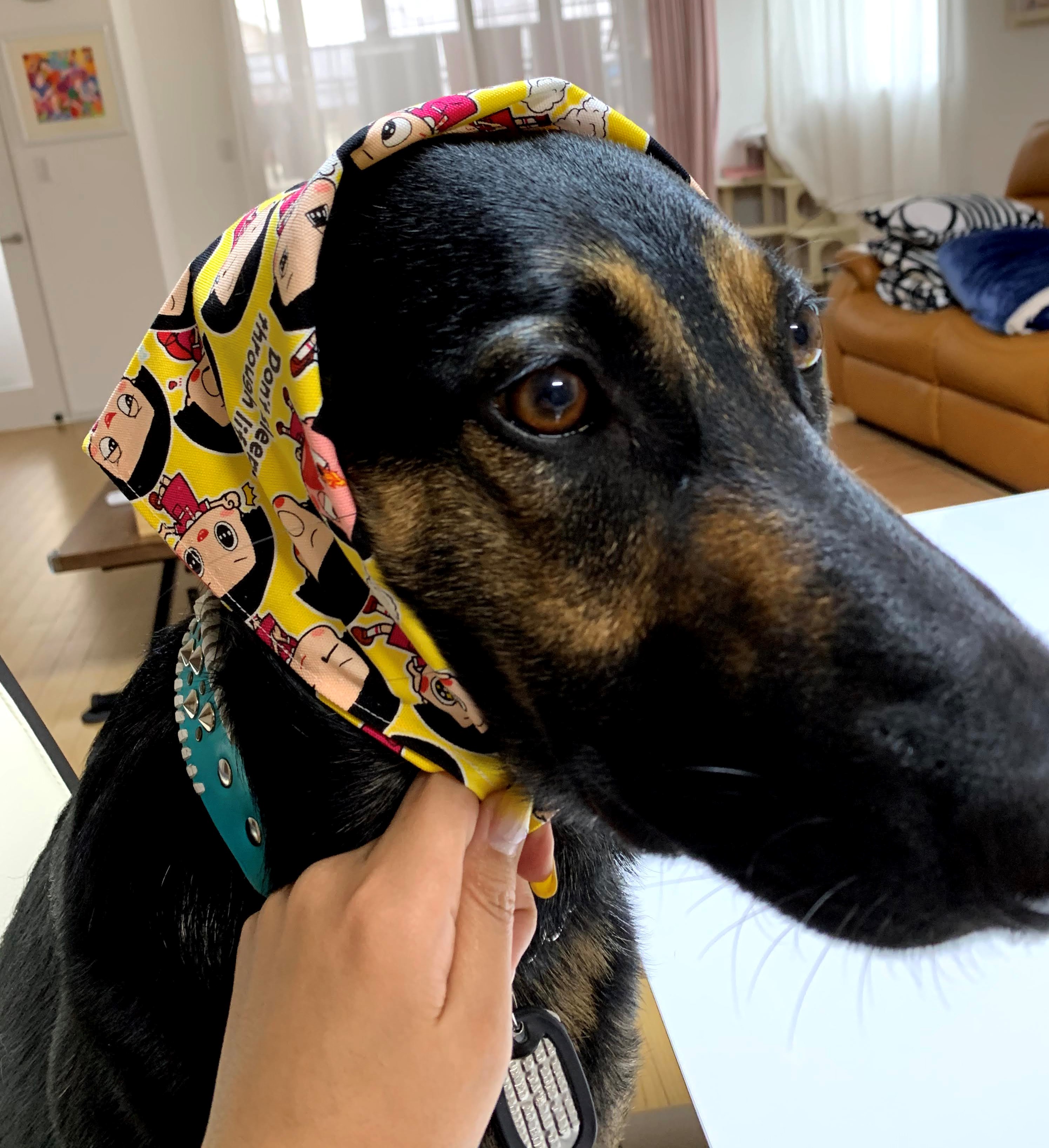 「あのいっぬはなぜ~ 風呂敷かぶってるの♪」