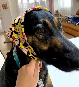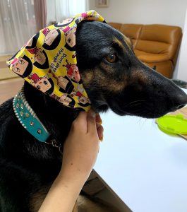 ただし、被り物の大きさには要注意です。(あごの下で結べません)