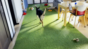 おもちゃの破片と一緒に、オヤツまでくわえて行くんじゃないーっ!