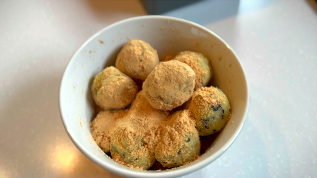 スペシャルさつまいもきなこ団子(黒ゴマ入)だぞ〜!