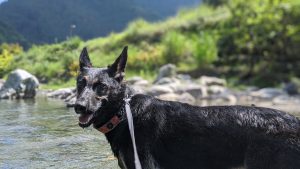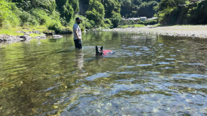 こんなふうに川に入るのはおろか、足先を水に浸けるのも嫌がっていました。
