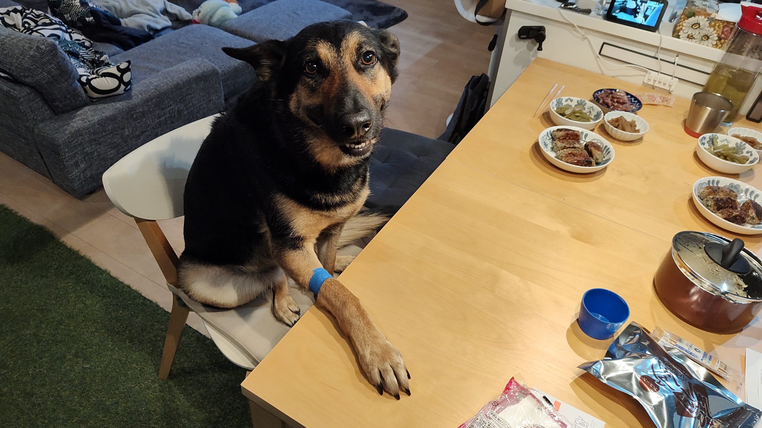 ご飯の時間はおねだりタイム! お手から始まるジャーマンシェパードの晩ご飯