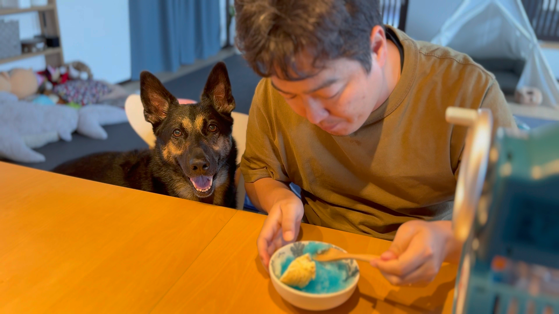 9月になってもまだまだ暑いので愛犬と一緒にかき氷したら、暑さが吹っ飛びましたw