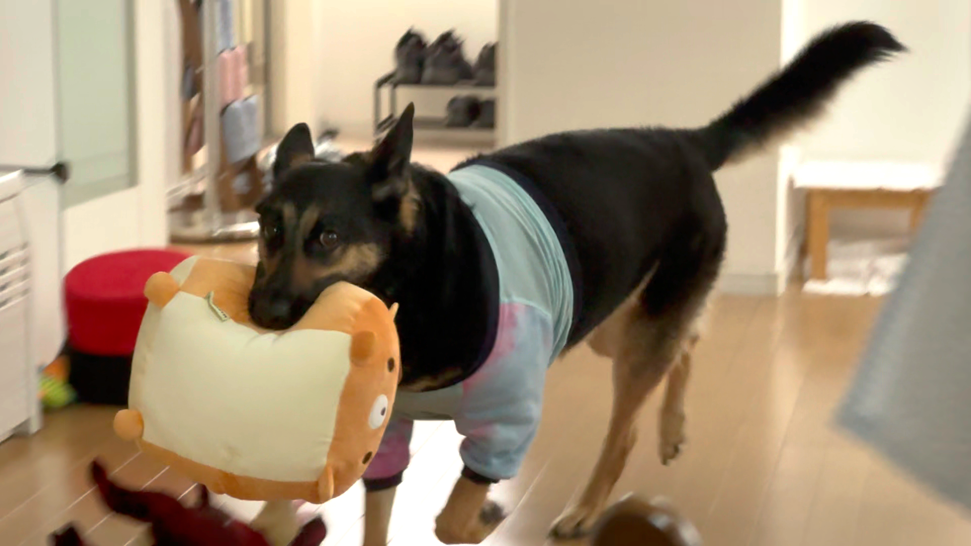 おみやげのぬいぐるみをあげたら、愛犬が疲れ知らずで大暴れしましたw
