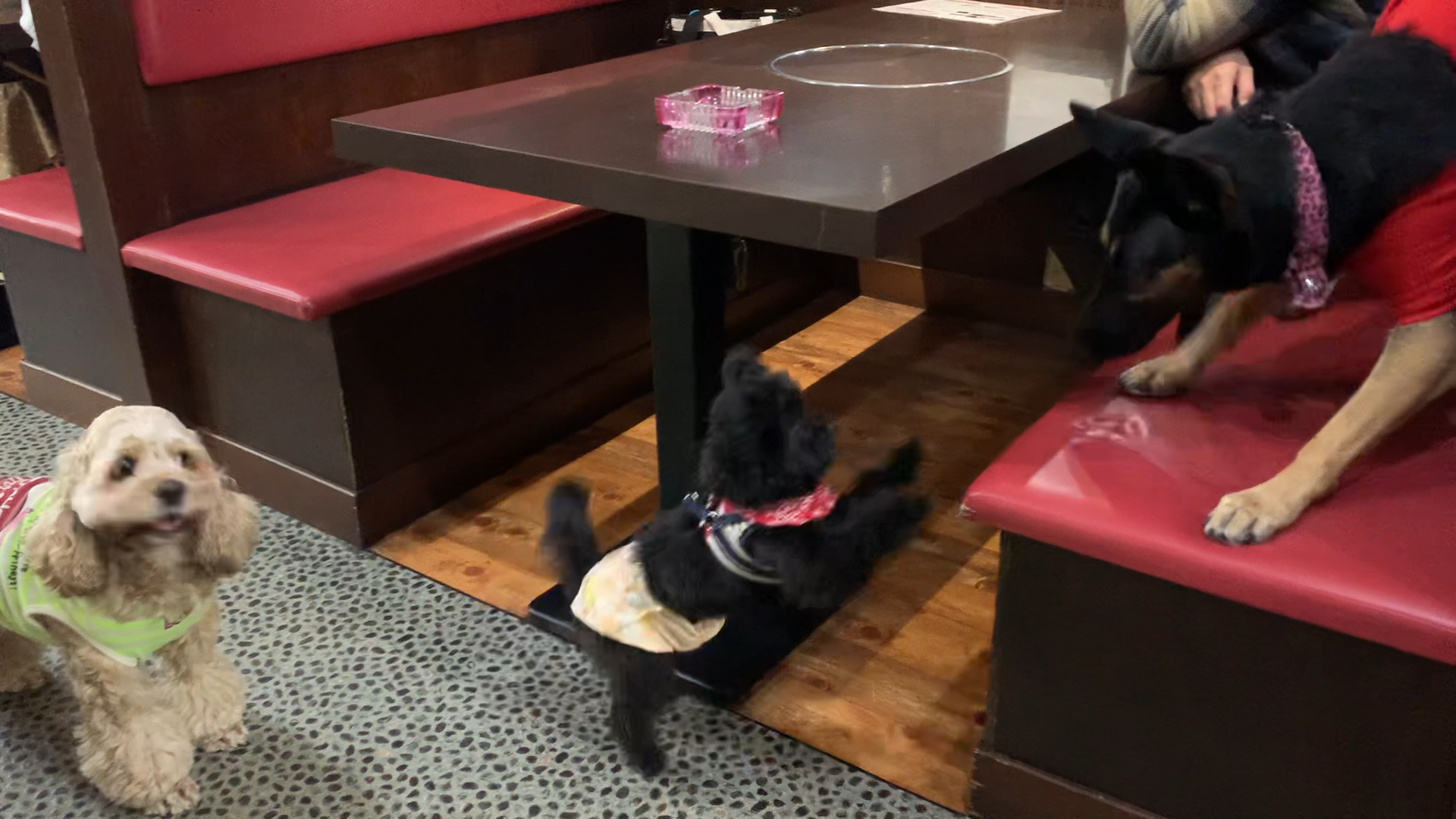 ドッグカフェでランチ中、予想外の展開に愛犬のビックリした顔が面白いw
