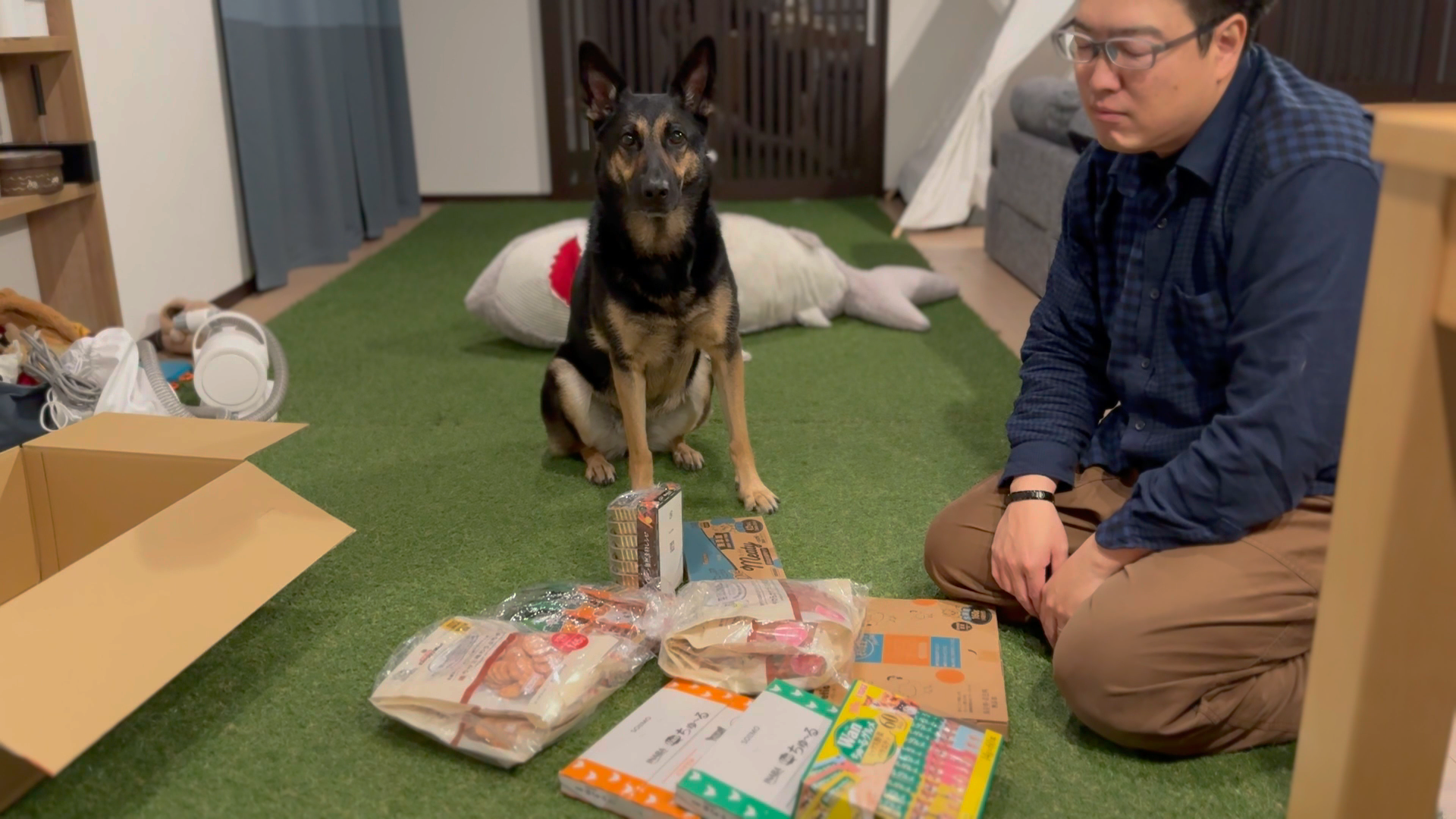 おーい、愛犬!Amazonブラックフライデーセールで購入した大好きなもの、開けてくよー!