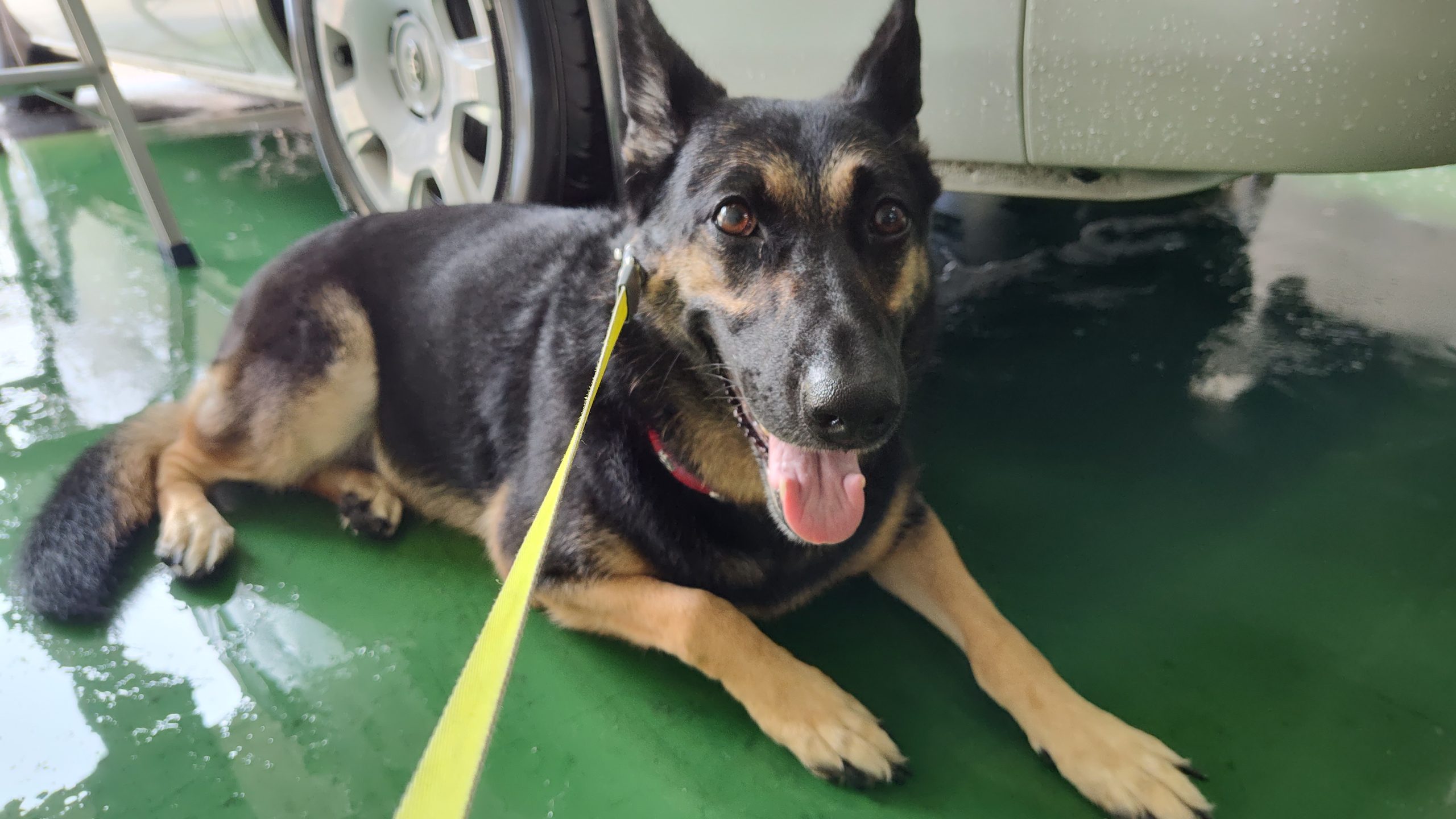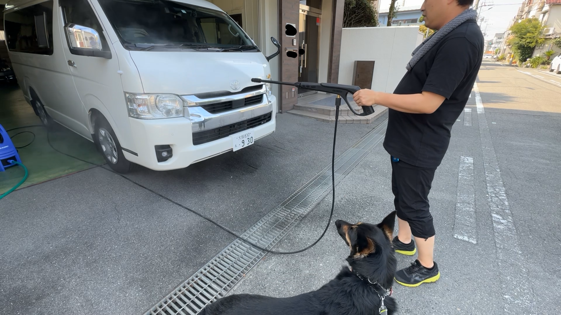 洗車しようと思ったら高圧洗浄機が壊れてたので、愛犬と一緒に洗車場へやってきました