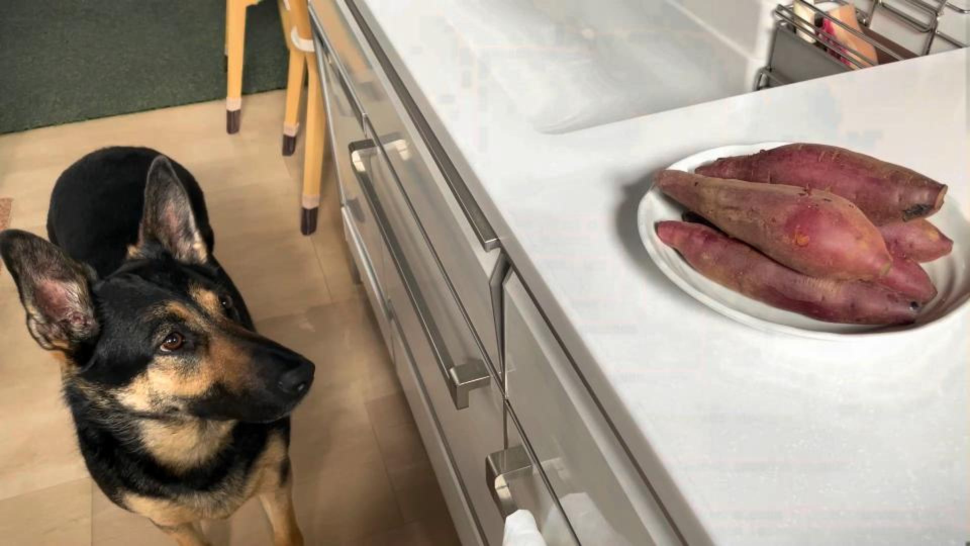 どんだけ爆睡していても、炊飯器から立ち上るふかし芋の香りで目が覚める愛犬