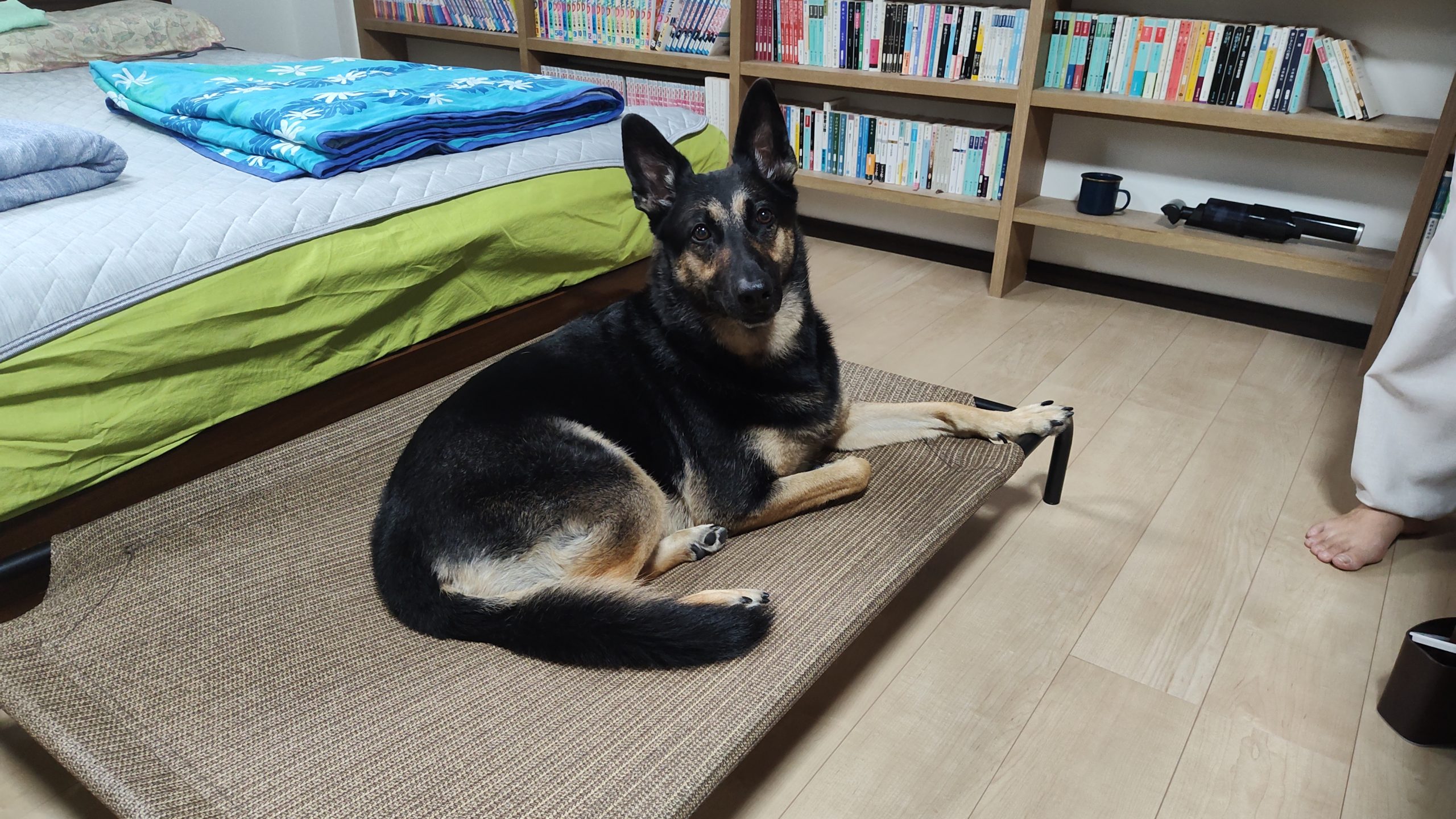 やっぱり雷が苦手なシェパード、そういう時だけオヤジにくっついてくるよね・・・