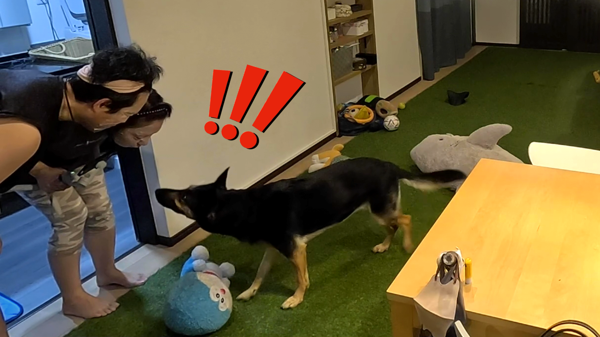 愛犬が好きすぎる飼い主によって、夕食後はいつも襲撃されるジャーマンシェパードが嫌そうですw