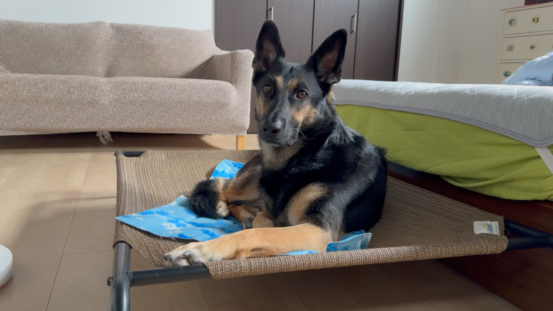 飼い主が寝込んでいた時、ふと横を見ると愛犬も一緒に横になってました。でも、その足がどう見ても・・・