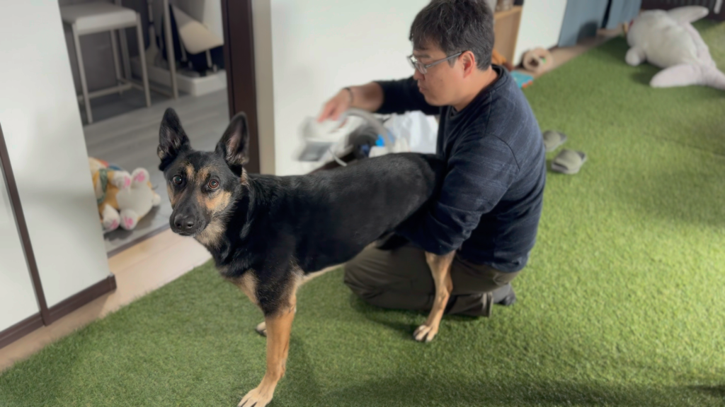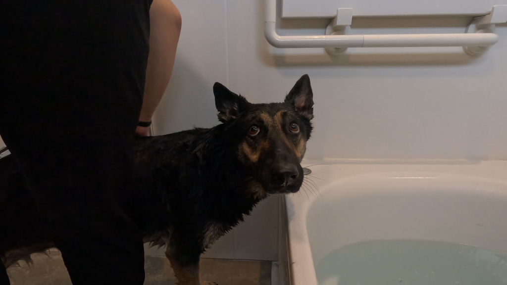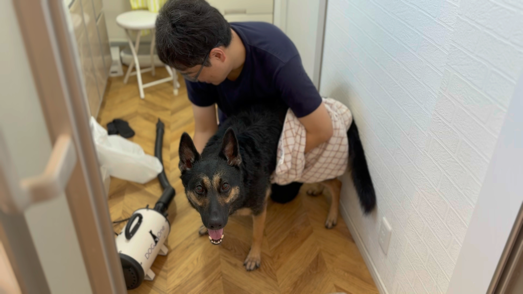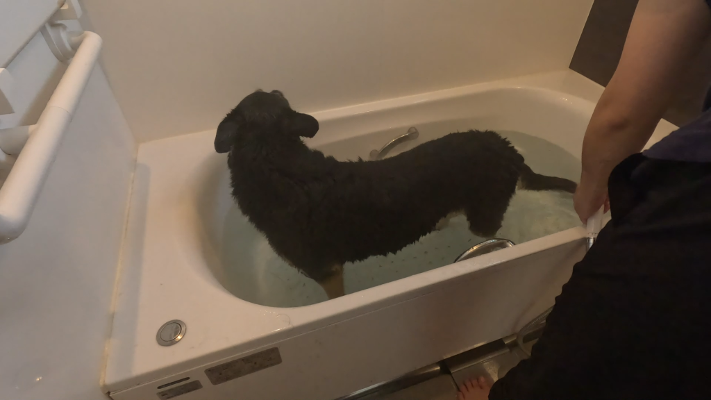 というわけで、「グルーミングタブ」こと、犬用の重炭酸イオンケア入浴剤を持参しました。