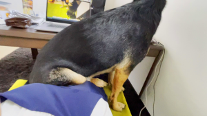 へなちょこシェパード、雷が怖くて震えが止まらない