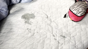 ですが、我が家には、以前もこんなことがあったので、シーツの下におねしょパッドを敷いてありまーす!