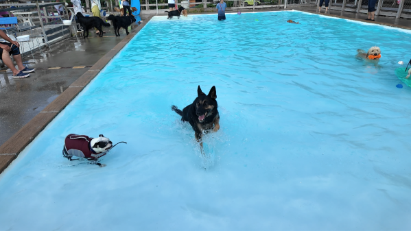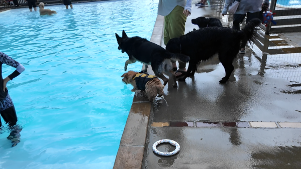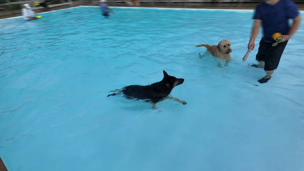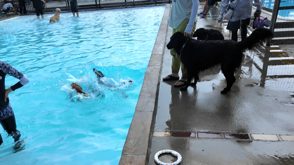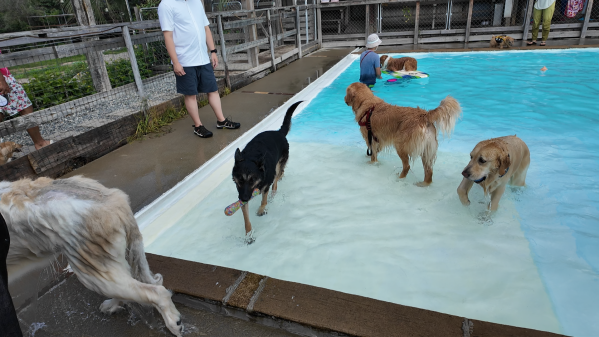 こんなにたくさんのワンちゃんと一緒にプールで遊ぶのは初めてかも・・・!