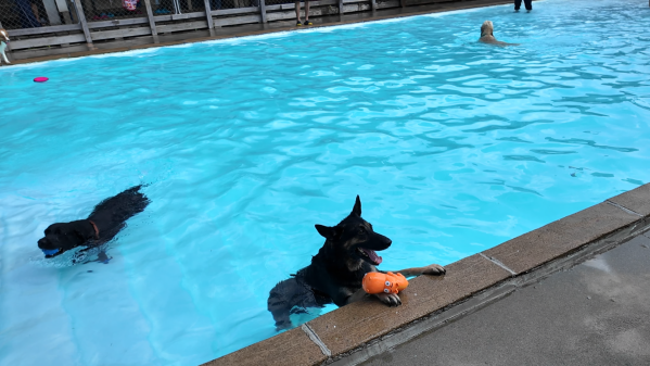 大型犬だらけのプールへ行ったら、愛犬がおもちゃ争奪戦で大爆笑でしたw